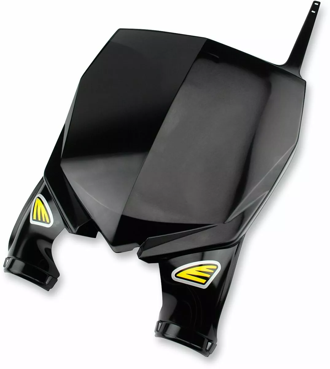 - Top mounting; wraps around the fork tubes