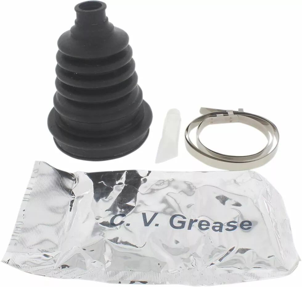 - Kit includes one universal boot, two stainless steel clamps, grease pack, and silicone cone lube and instructions