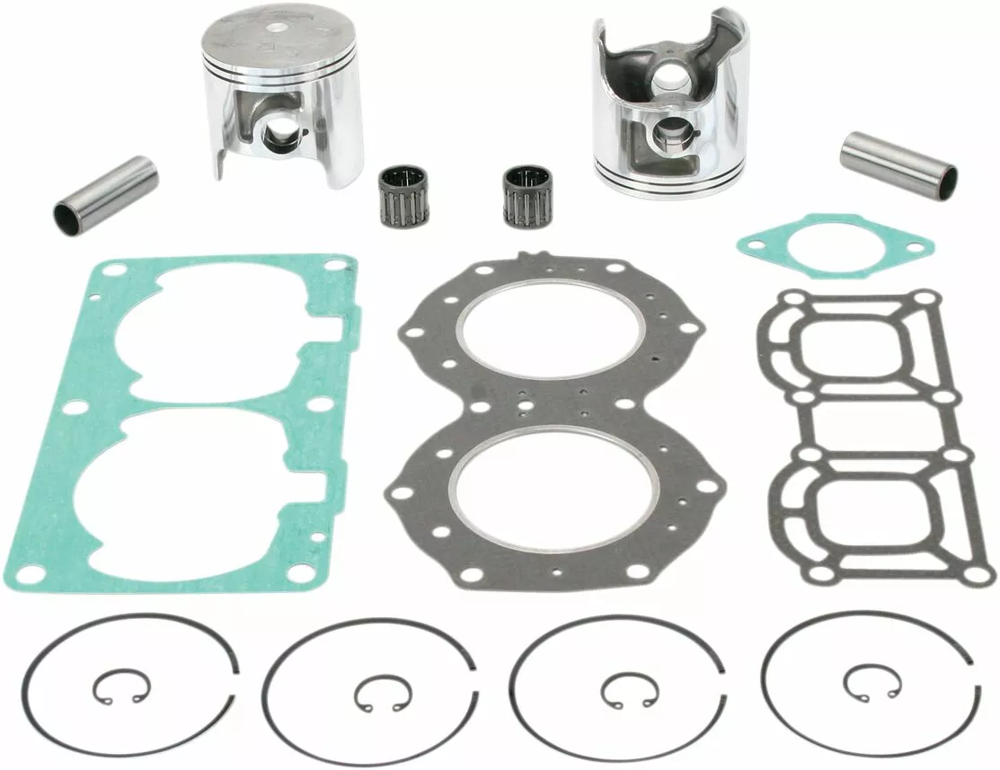 - Includes pistons, rings, pins, clips, racing needle bearings, head and base gaskets, intake and exhaust gaskets