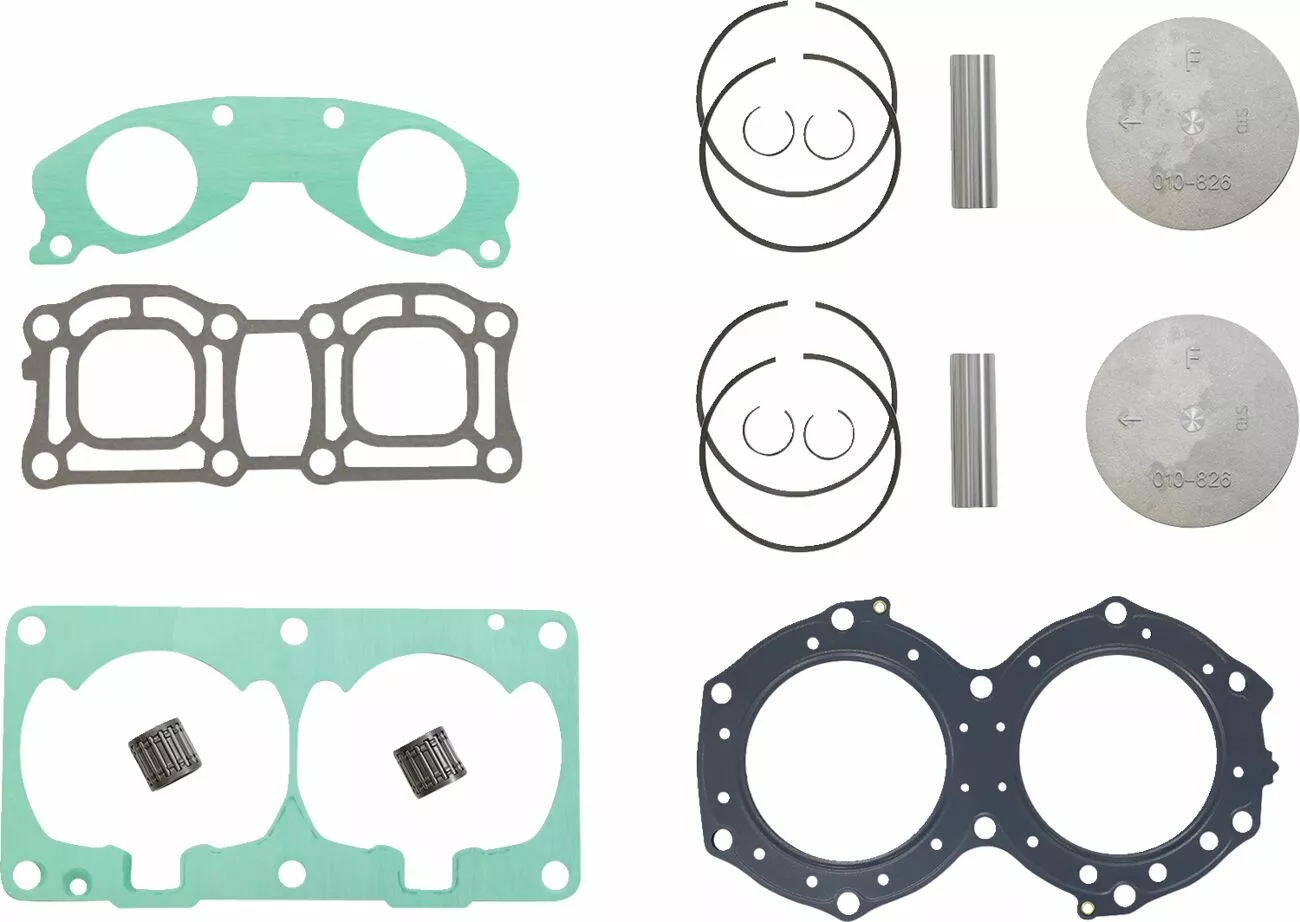 - Includes pistons, rings, pins, clips, racing needle bearings, head and base gaskets, intake and exhaust gaskets