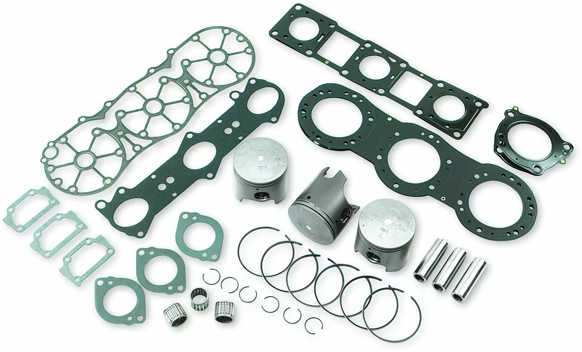 - Includes pistons, rings, pins, clips, racing needle bearings, head and base gaskets, intake and exhaust gaskets