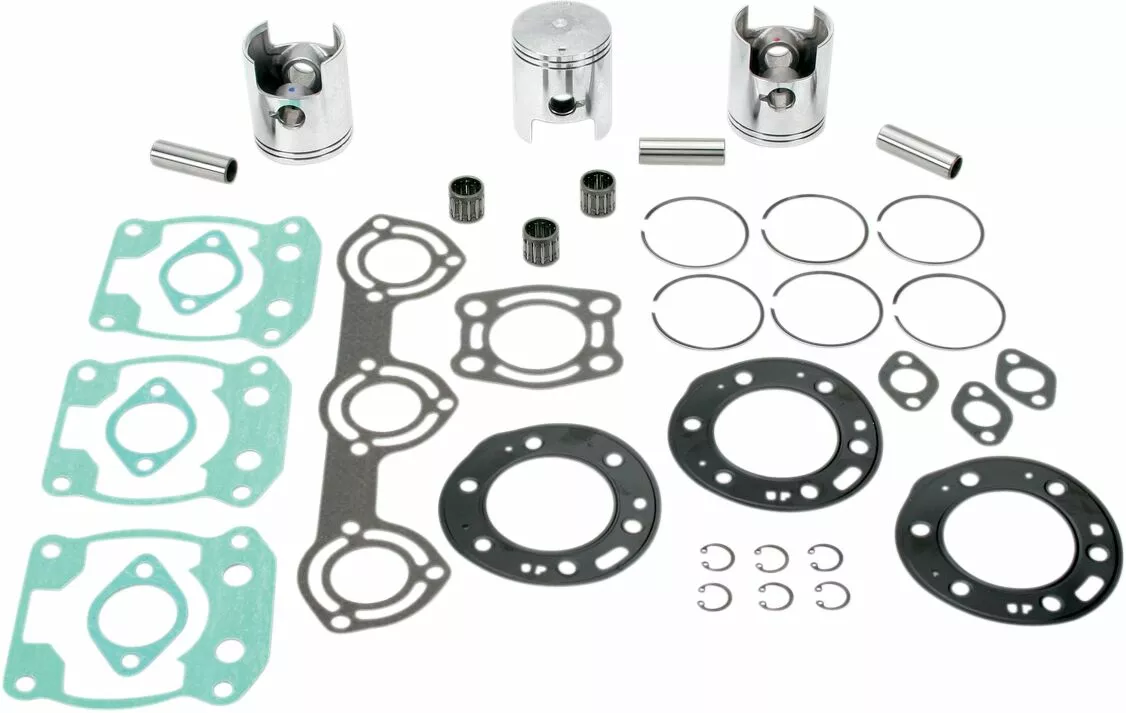 - Includes pistons, rings, pins, clips, racing needle bearings, head and base gaskets, intake and exhaust gaskets
