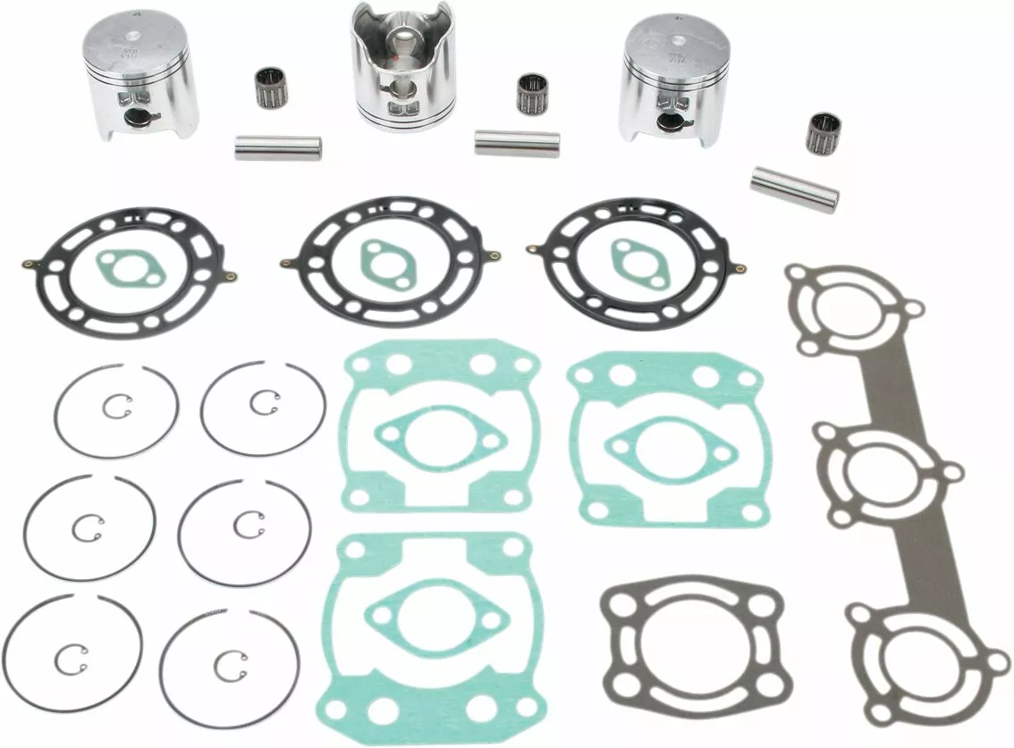 - Includes pistons, rings, pins, clips, racing needle bearings, head and base gaskets, intake and exhaust gaskets