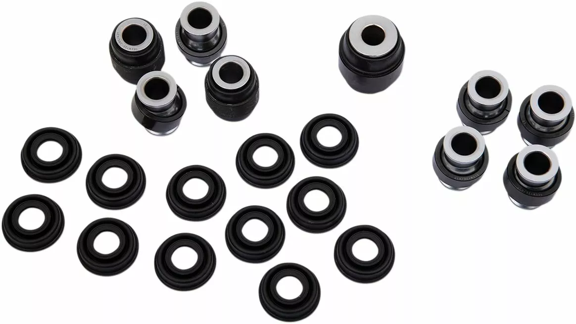- Cost-effective kit containing all bearings, bushings, seals, shafts and miscellaneous components to repair the rear upper and lower A-arms and knuckle