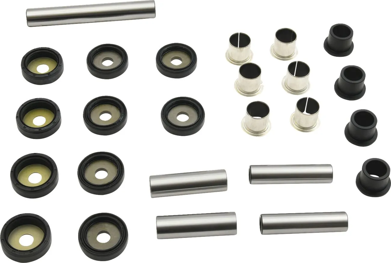 - Cost-effective kit containing all bearings, bushings, seals, shafts and miscellaneous components to repair the rear upper and lower A-arms and knuckle