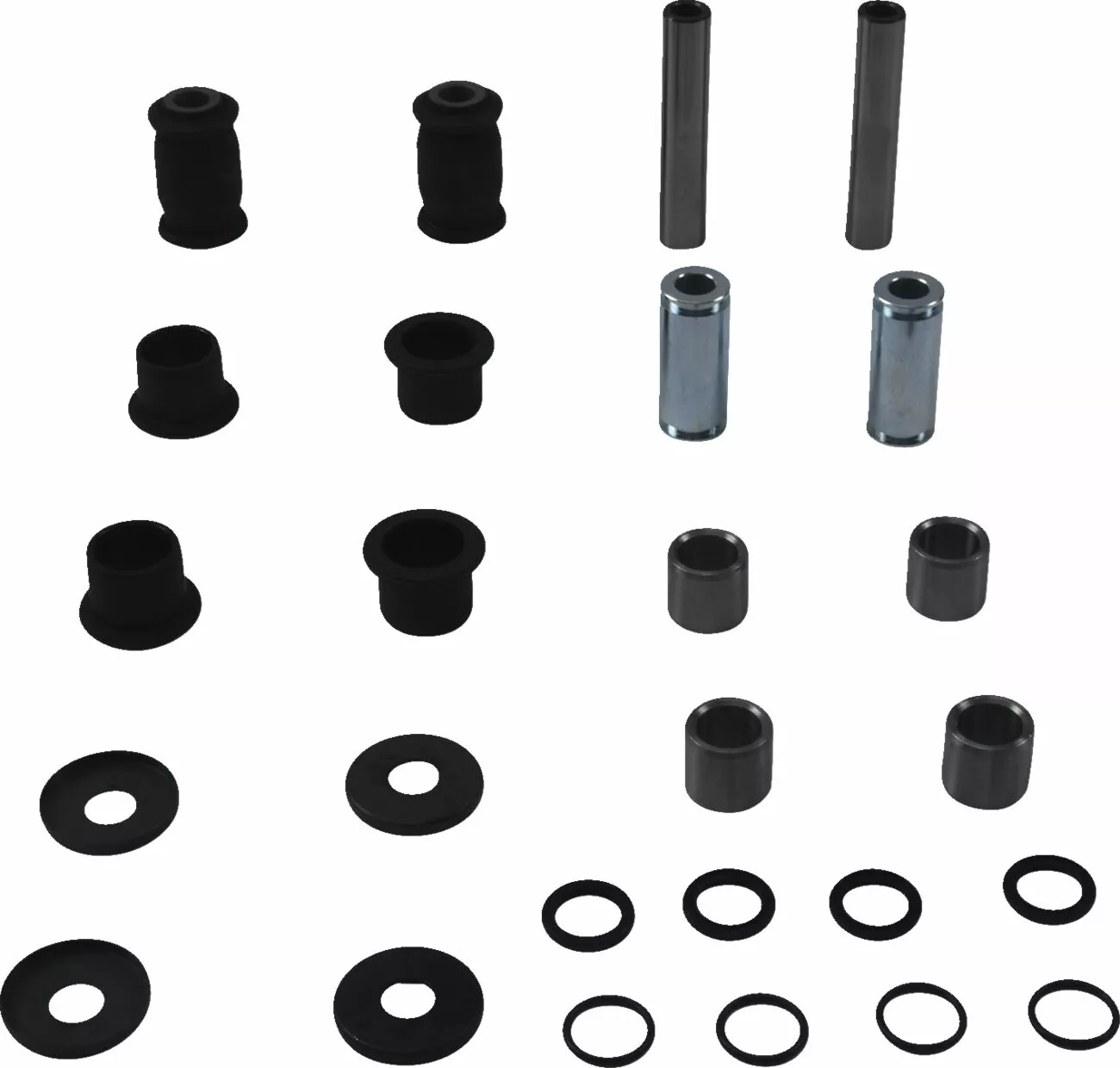 - Cost-effective kit containing all bearings, bushings, seals, shafts and miscellaneous components to repair the rear upper and lower A-arms and knuckle