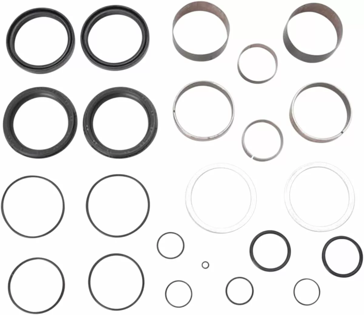 - Kit contains fork seals, wipers and upper and lower bushings