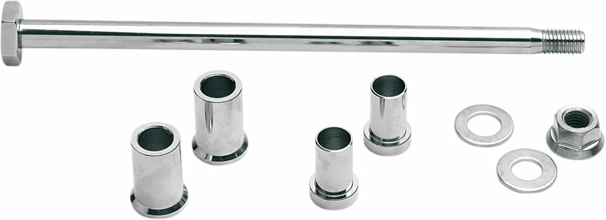 - Kit includes pivot shaft, two bushings, two chrome spacers, chrome nut and washer