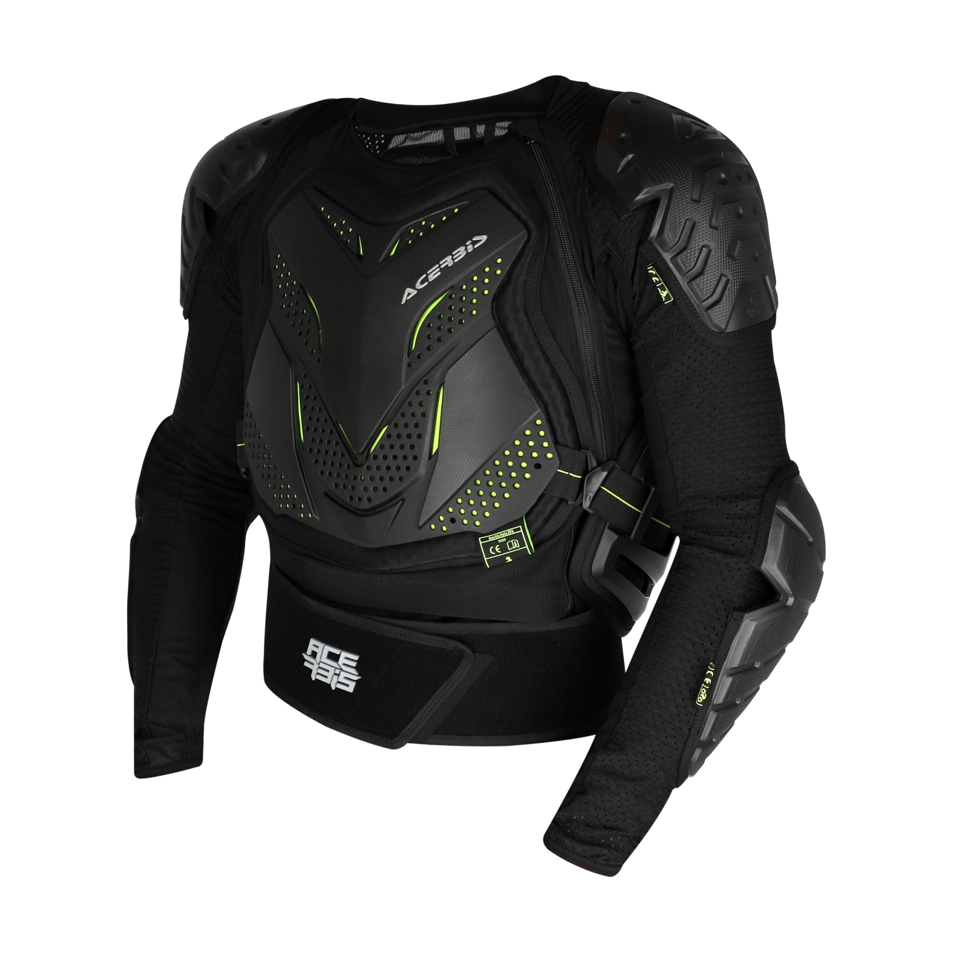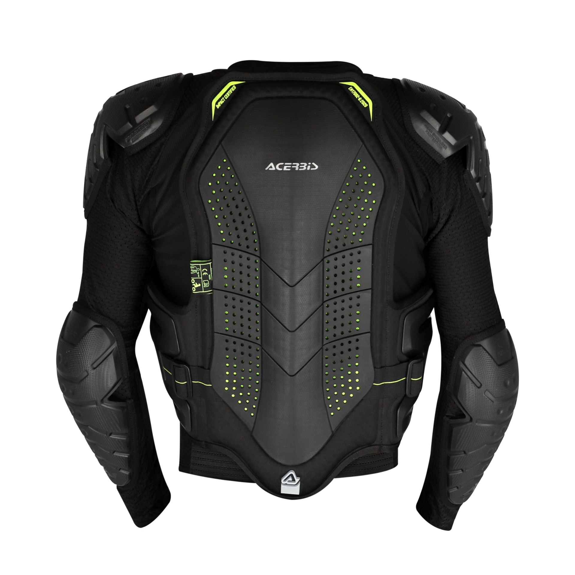 - TPR A logo on back and TPR Acerbis logo on band. Homologous loop stitching labels under plastic on chest, back, left shoulder and left elbow.