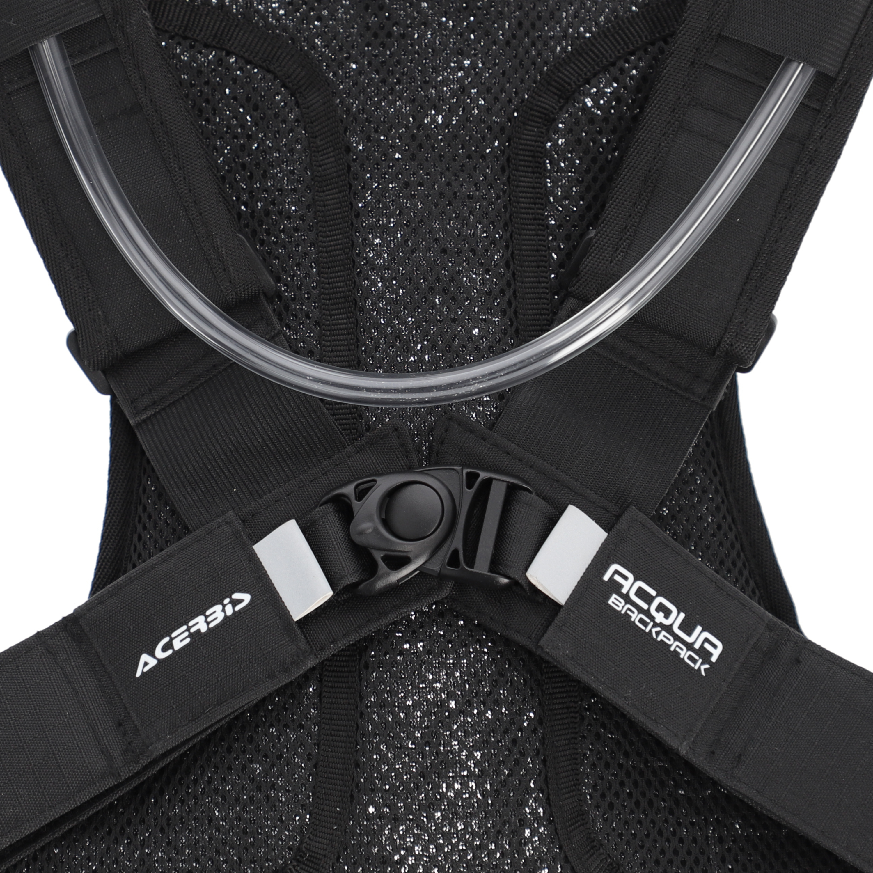 - Hydration tube with quick-release connection.