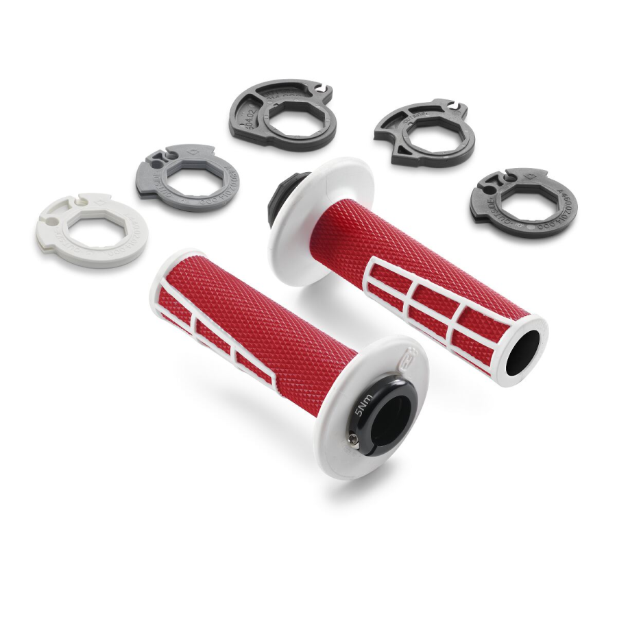 - Left grip with aluminum clamping ring for fixing on the handlebar