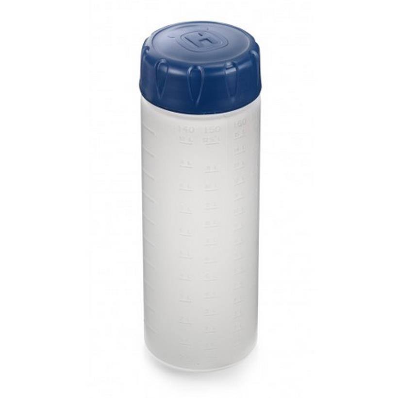 - Sticla pentru ulei Husqvarna este prevazuta cu gradatii in relief , astfel incat vei sti tot timpul ce cantitate de ulei pentru amestec vei pune in benzina .