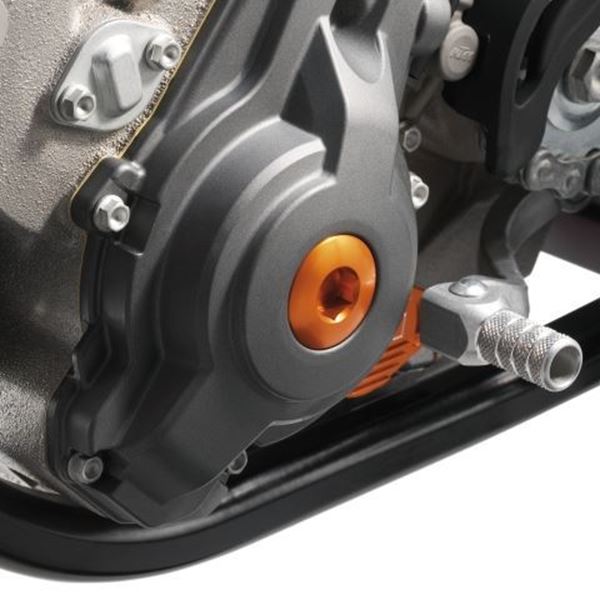 - Surubul pentru capacul de aprindere KTM este fabricat din aluminiu de culoare portocaliu .