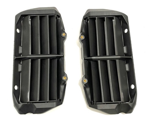 - Protectiile pentru radiator fabricate exclusiv de KTM sunt compuse din 2 bucati . Una este grilajul ce vine in fata radiatorului , iar cealalta este o rama dintr-un plastic extrem de tare si rezistent ce imbraca radiatorul .