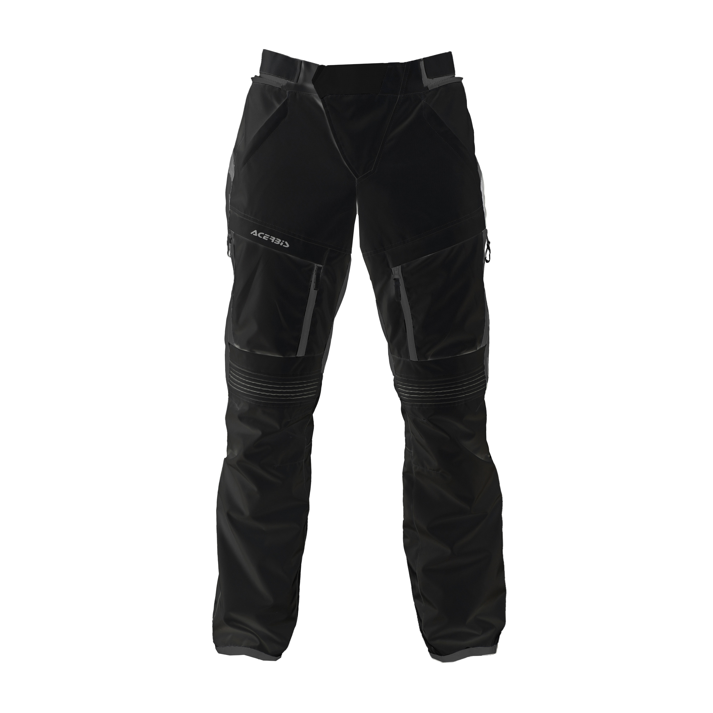Funcționalitate sporită: Pantalonii dispun de două buzunare frontale și unul pe picior, toate prevăzute cu fermoar, oferind spațiu suficient pentru obiectele esențiale. Reglajele din talie asigură o potrivire perfectă, iar logo-urile reflectorizante Acerbis și aplicațiile pentru picioare îmbunătățesc vizibilitatea în condiții de lumină scăzută.