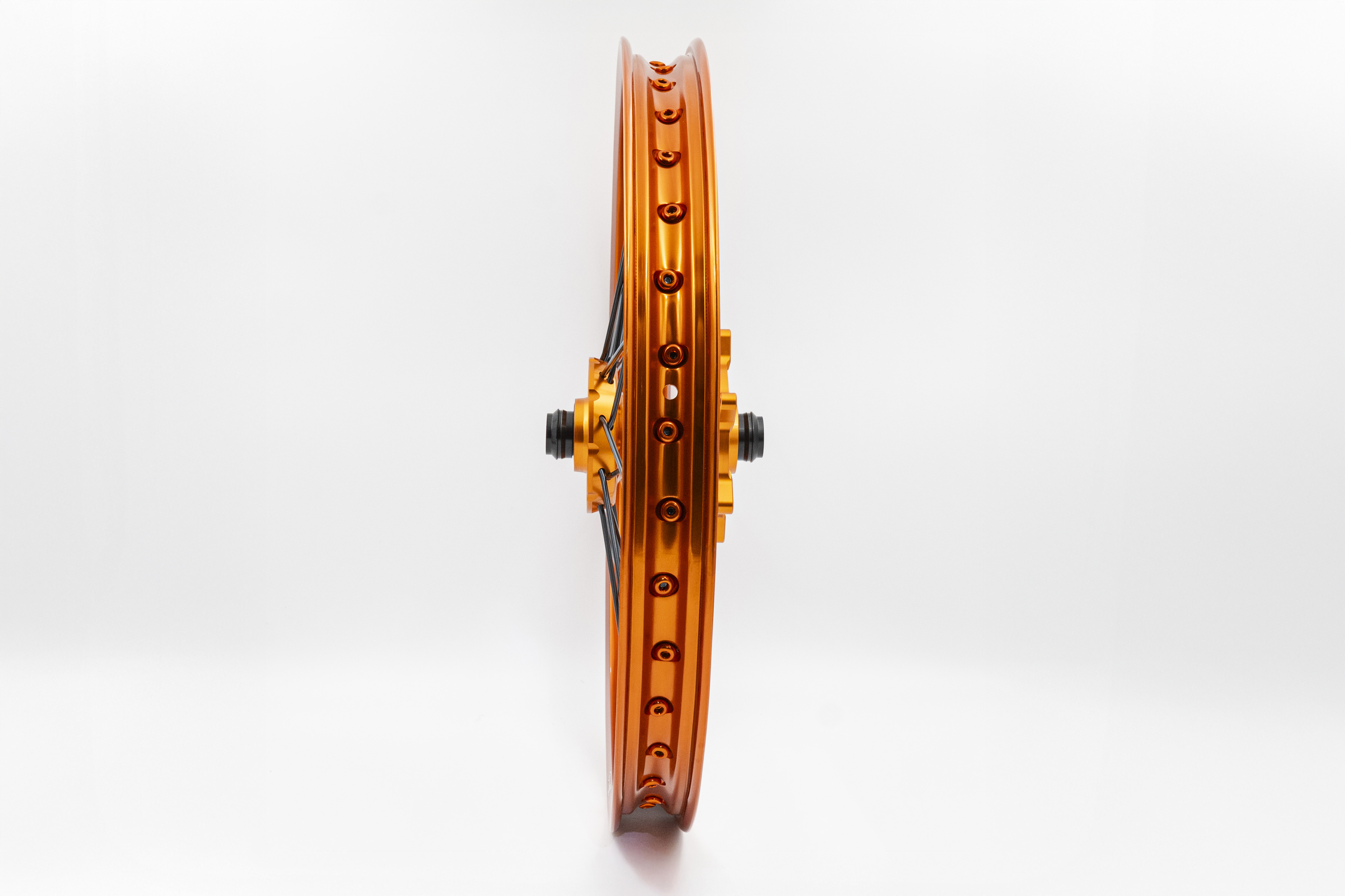 - Janta , butucii si capetele de spite sunt fabricate din aluminiu anodizat portocaliu, extrem de rezistent.