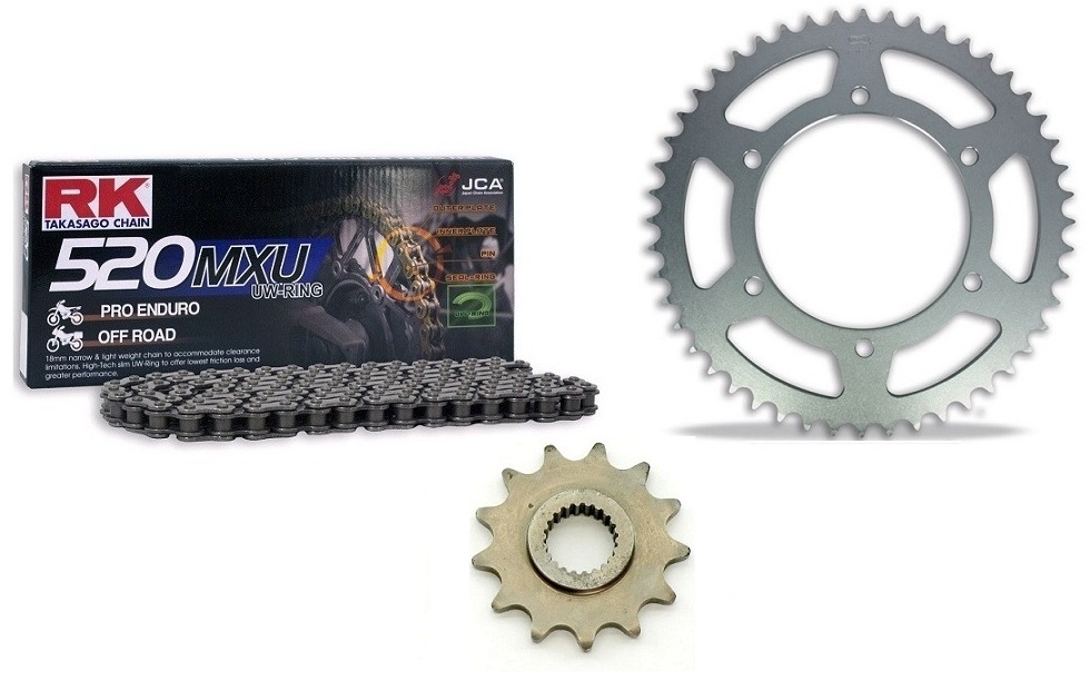 - Kitul contine lant RK 520 MXU-116 zale UW-Ring, pinion spate 50 dinti, pinion fata 13 dinti.