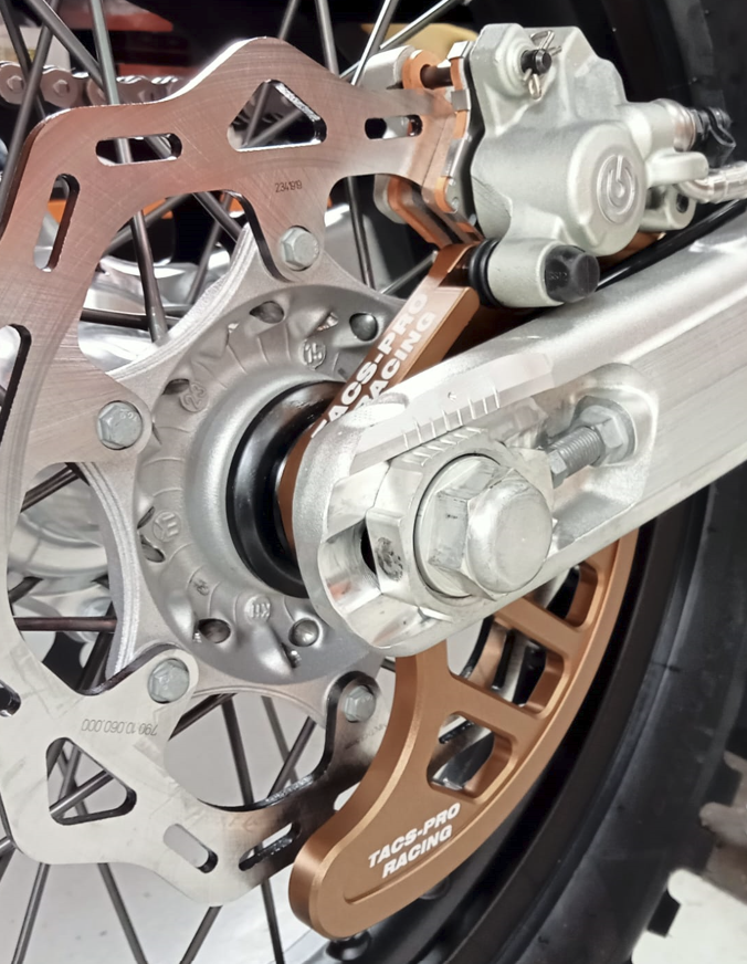 <ul><li>Sistem control presiune roata TACS PRO KTM TBI 24-26</li><li><p style="margin-bottom: 0.8rem; color: rgb(17, 17, 17); font-family: Open-Sans, sans-serif; font-size: 14px;">TACS-PRO RACING - Tire Air Control System - suitable for KTM/Husqvarna TBI 2024- ? For original rear wheel!<br><br>Incudes full Tire Air Control System with all parts to upgrade your bike!<br><br>The TACS-PRO RACING - Tire Air Control System designed for your dirt bike is the ultimate missing part on your bike. Automated pumping and draining of your rear tire will give optimum rear tire pressure that allows the tire to grip on its best performance in every situation. Define and save on the display unit on your handlebar your optimum pressure rates for hard sections and faster sections of your ride. Switch between pressure rates while riding. No more stop for draining air that later in the race you are missing on faster sections. The compressor unit mounted near the air filter of your bike will measure and control your pressure to the defined pressure. Control is easy and reachable as this system is controlled by the original signal light switch of your bike. Included in the package is also a special designed rear brake caliper and a full rebuild set containing hub spacers, distance pipe, high quality SKF bearings, special pressure sealing rings, mud sealing rings and all materials needed to have a perfect fit to your bike. For more information refer to the ?How it works? section.<br><br>Parts included:<br><br>Pressure Control Unit<br>Display Unit<br>Drain Valve<br>Rear Brake Disk Protection (Titanium/brown)<br>2x SKF High Quality Bearings<br>4x Hub Pressure sealings (2 are provided as spare)<br>2x Special designed wheel spacer with MUD sealings mounted<br>Inner distance tube for Hub<br>Hoses and all other parts for mounting the system on your bike<br><br><br>CAUTION:<br><br>The original KTM blinker switch is not included in the TACS-PRO RACING - Tire Air Control System<br><br><br>Fitting to:<br><br>KTM EXC TBI 2024-2026</p><p style="margin-bottom: 0px; color: rgb(17, 17, 17); font-family: Open-Sans, sans-serif; font-size: 14px;">CAUTION:<br>NHS ?Not for Highway Service (only to be used in competition)</p></li></ul>